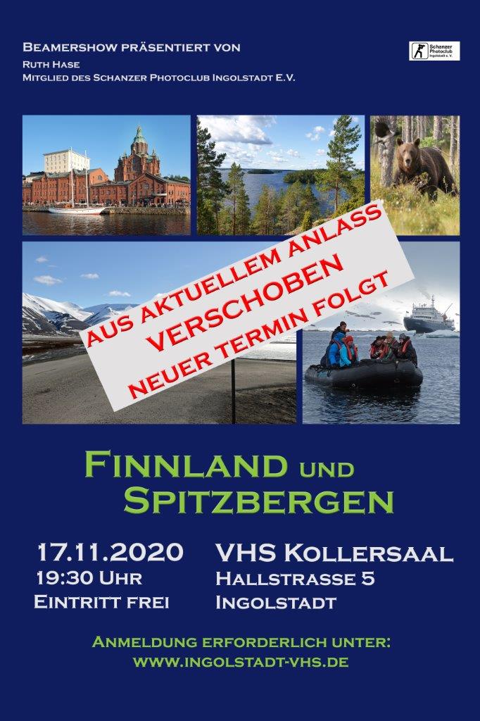 Aufgrund der Corona Maßnahmen müssen wir die für den 17.11.20 geplante Beamershow "Finnland und Spitzbergen" leider verschieben. Sobald ein neuer Termin bekannt ist, werden wir dies bekannt geben. Bleibt alle gesund.