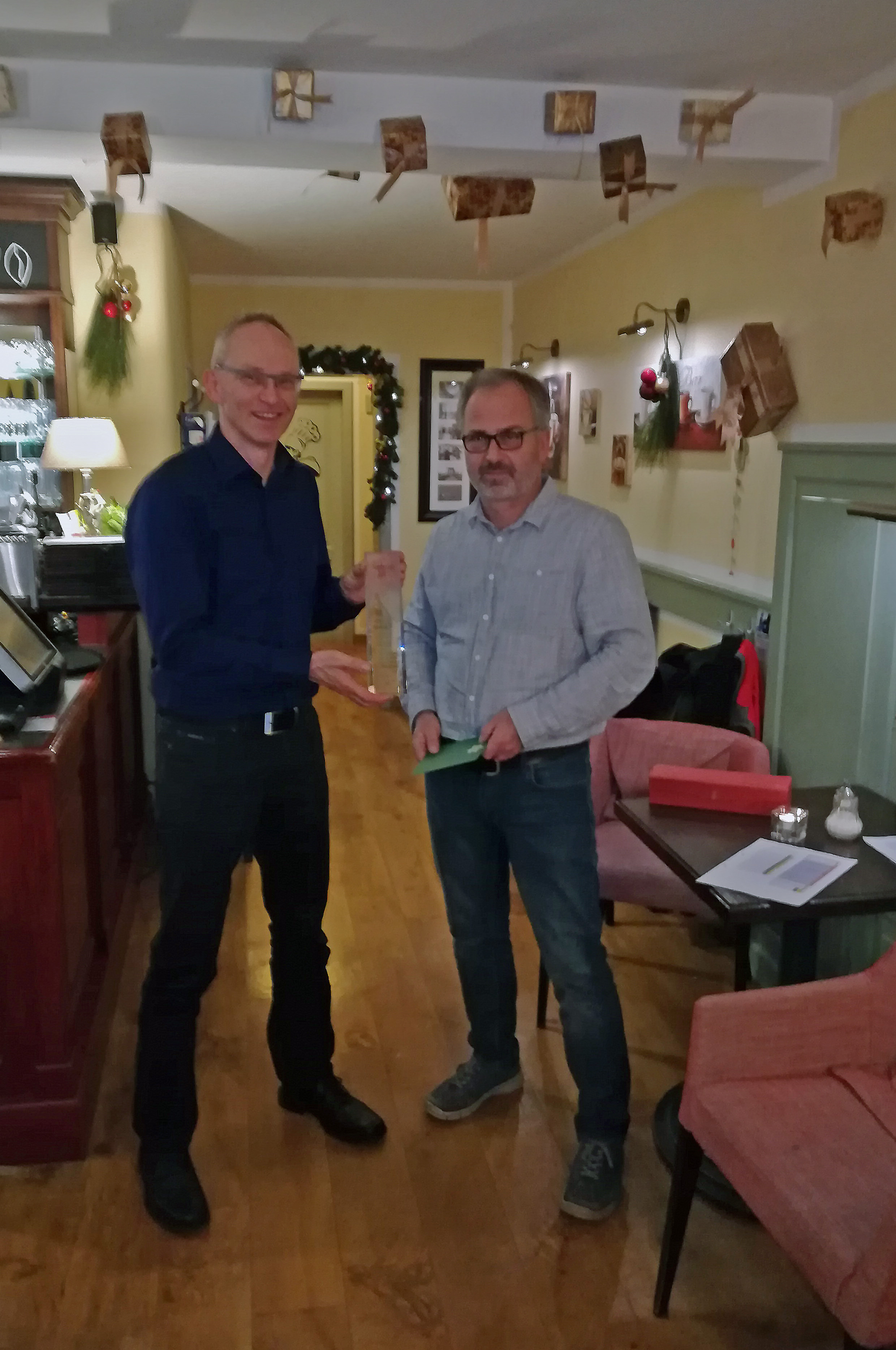 Da die Trophäe keine weiteren Platz mehr für die Namensgravur hat, und nach insgesamt 4 ersten Plätzen, ging der Pokal dauerhaft an Hermann Weiß. Für 2019 gibt es dann einen neuen Pokal. Bei netten Gesprächen ließen wir dann den gelungenen Abend ausklingen.