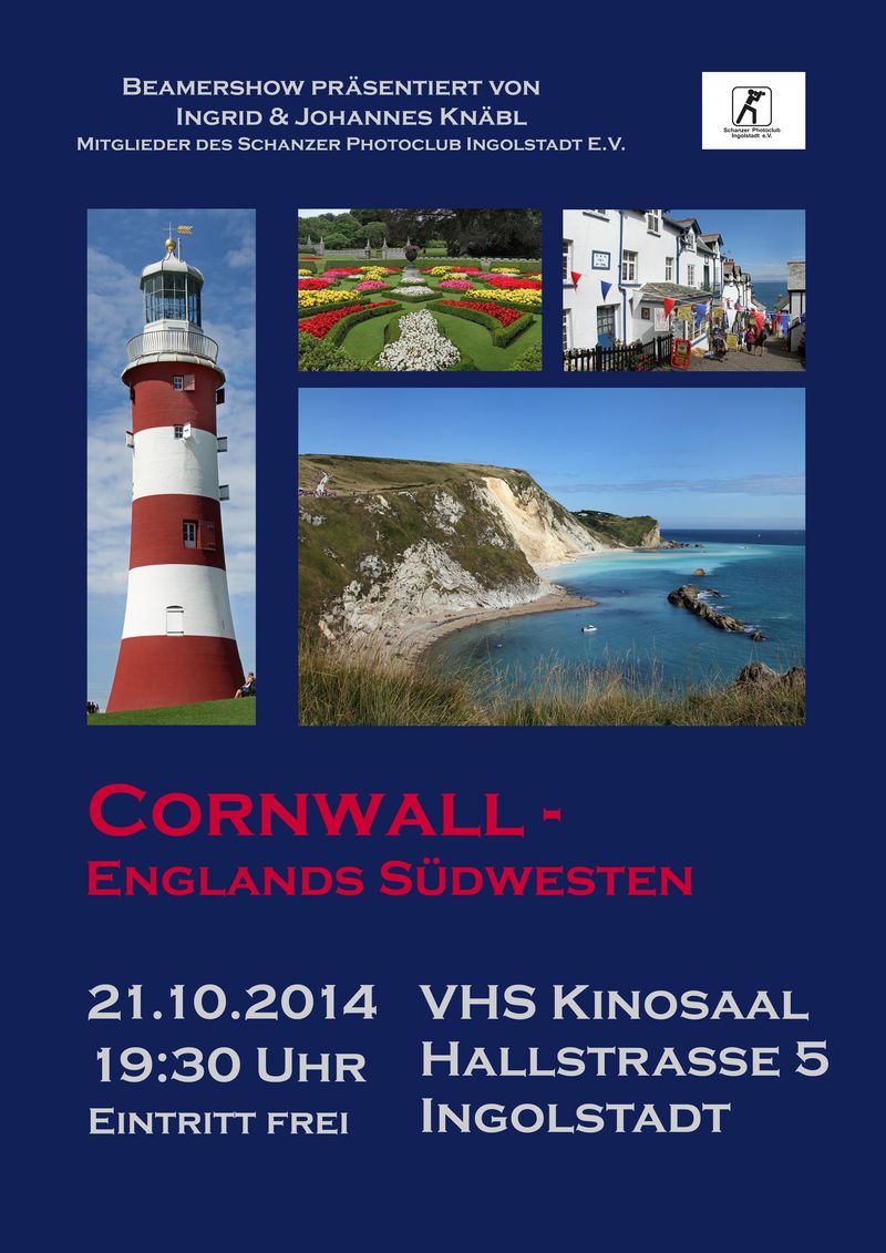 Vielen Dank an Ingrid und Johannes Knäbl die eine schöne Beamershow über ihre Reise durch den Südwesten Englands gezeigt haben. Der VHS Kinosaal war wieder mal komplett gefüllt und wir bedanken uns bei den zahlreichen Besuchern für ihr Interesse.